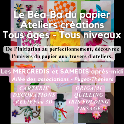 De l'initiation au perfectionnement, je vous fais découvrir les techniques connues et moins connus de l'univers du papier (origami, quilling, iris folding, tissage, relief, pop-up ...).